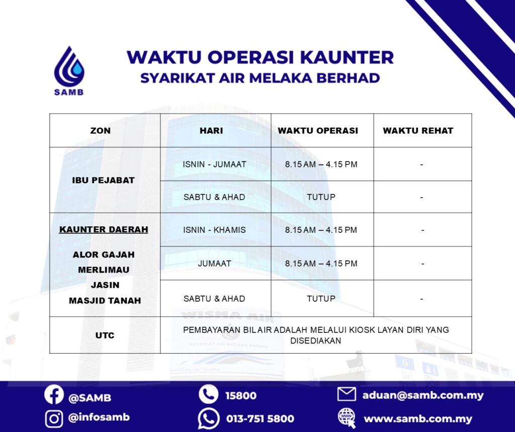 Hak Cipta © 2023 Syarikat Air Melaka Berhad (SAMB). Hak Cipta Terpelihara